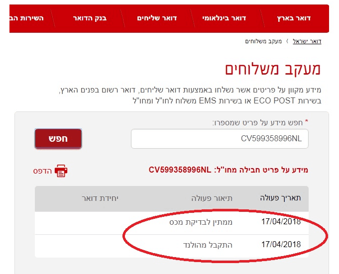 כשהגעתי הביתה עם החבילה בידי, בדקתי את הסטטוס שלה באתר הדואר: